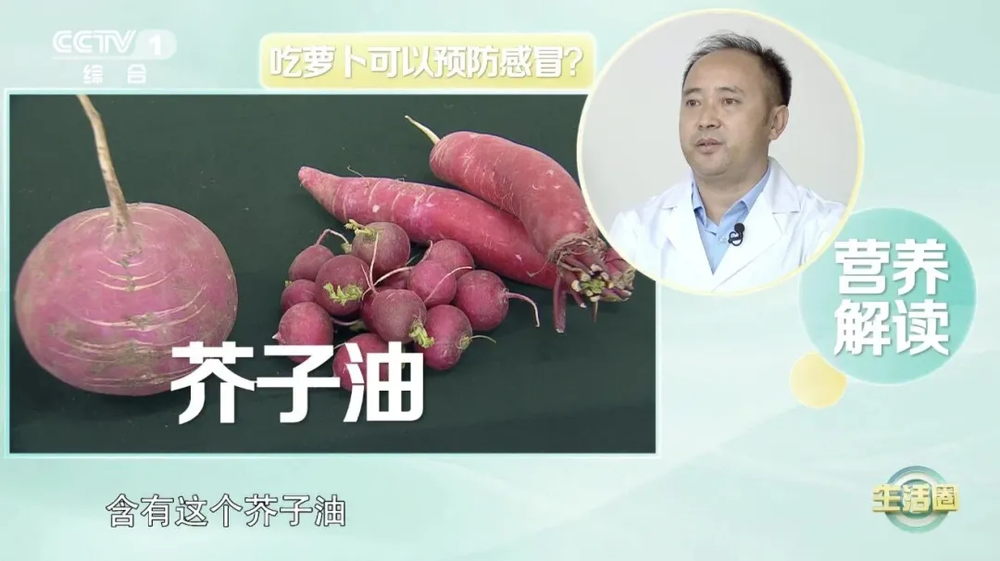蘿卜中還含有芥子油,它是一種辛辣物質,這就是吃蘿卜時會感覺辣的原因。芥子油的辛辣味容易被鼻黏膜吸收,對緩解感冒、鼻塞癥狀能夠起到一定作用,還可以促進胃腸蠕動,有助于排便。