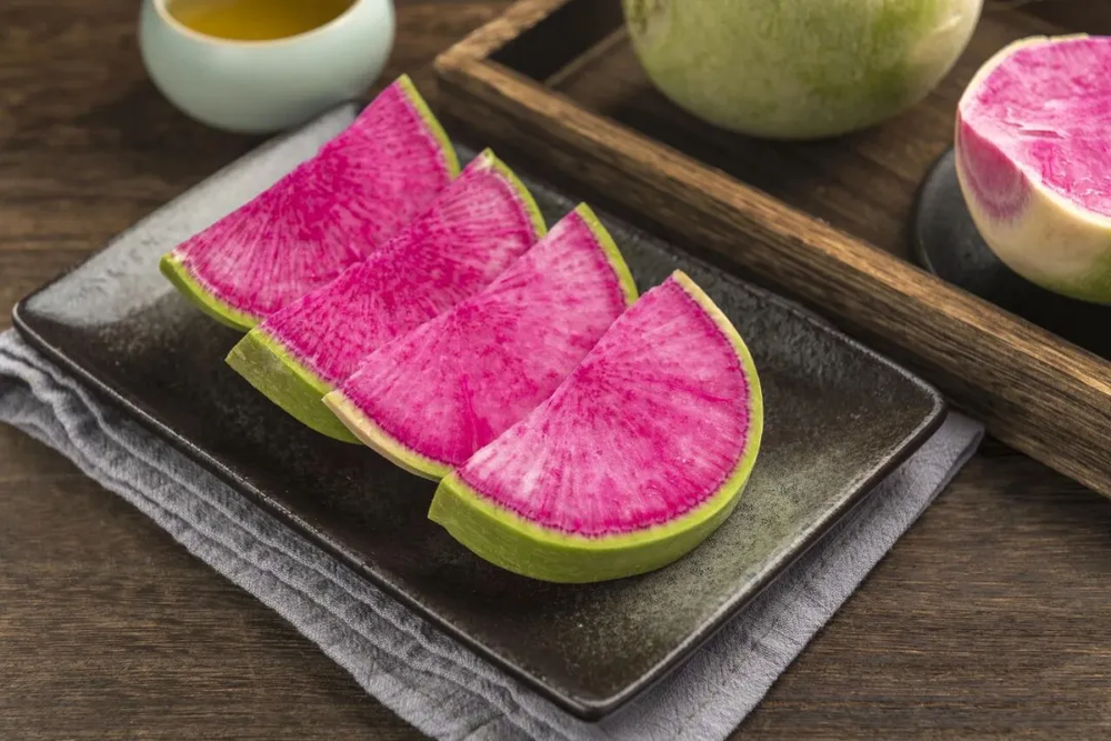 心里美蘿卜清脆爽口,常用于涼拌,需要注意的是,花青素在酸性條件下穩定,因此涼拌時最好加點醋。