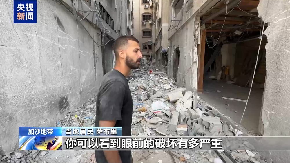 當地居民 薩布里:你可以看到眼前的破壞有多嚴重:我們嘗試著住下來,但這樣的環境根本無法正常生活 ,破壞成這樣了,怎么住?無論是小孩,年輕人,老人還是婦女都沒法住的。這棟樓原本有七層,如今只剩一層完好,這邊這棟樓也被炸壞了。我們盡力清理廢墟,想辦法修復房屋,加沙市的重型機械太少,僅靠一兩臺挖掘機根本不夠,希望國際社會能提供援助,讓我們有機會重建家園。